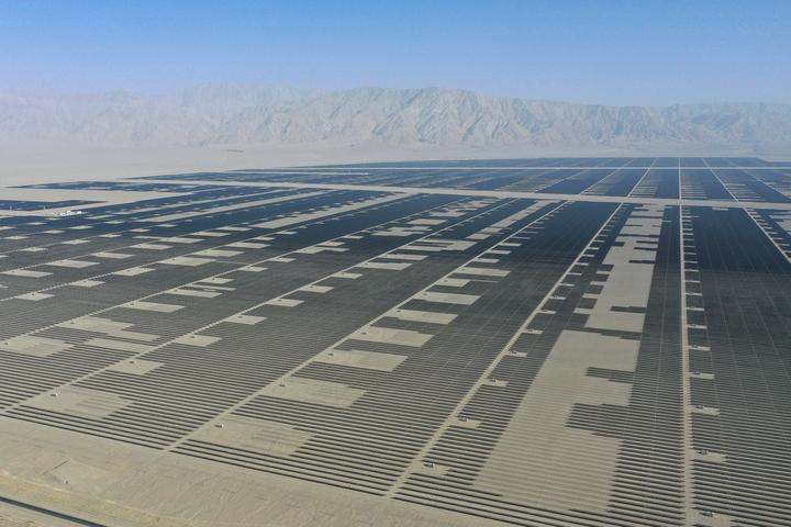 那是6月26日拍摄的中原绿收新疆中绿电若羌400万千瓦光伏名目(无人机像片)。新华社记者丁磊摄